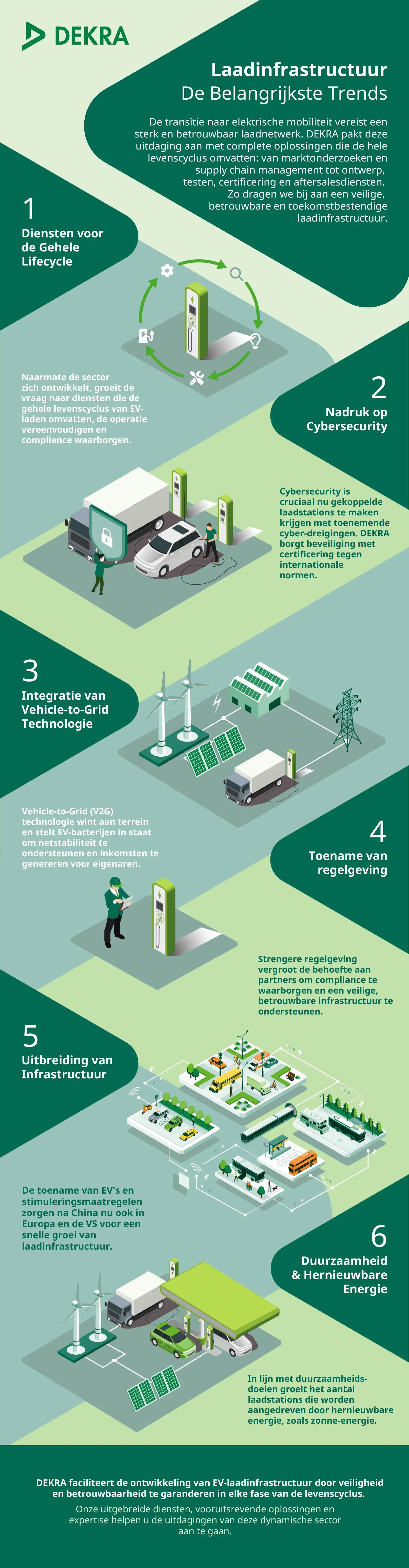 Deze infographic geeft een samenvatting van de 6 belangrijkste trends op het gebied van laadinfrastructuur voor EV's.